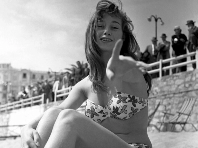 Brigitte Bardot entspannt sich, während Hunderte von Fans sie beobachten.