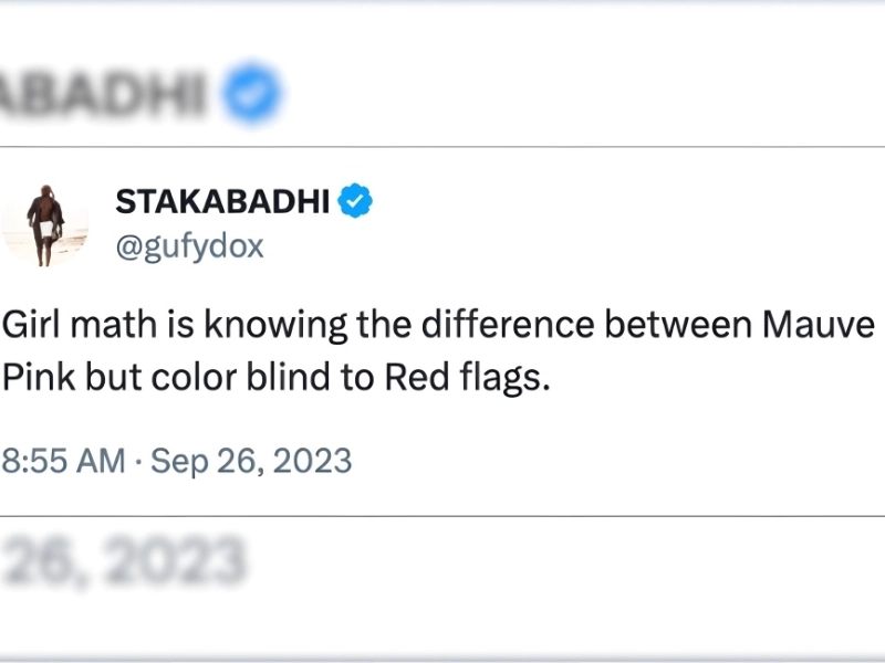 Girl Math: Warnsignale ignorieren Von @gufydox Die meisten Mädchen sind farbenblind, wenn es um die Warnsignale geht, die Männer senden, doch sie können feinste Nuancen zwischen beispielsweise Mauve und Rosa sofort erkennen. Das ist die Essenz von Girl Math!