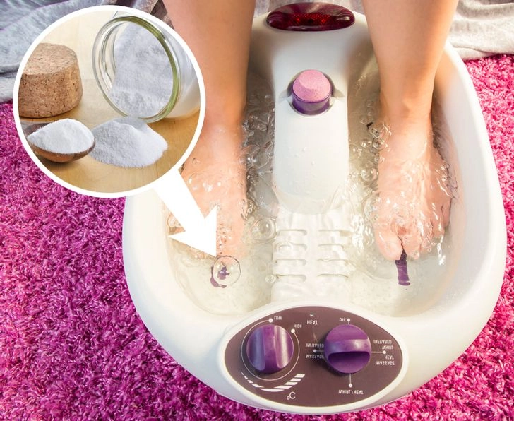 Natron eignet sich auch hervorragend für ein Fußbad. Füllen Sie einfach ein geeignetes Gefäß mit lauwarmem Wasser, geben Sie drei Esslöffel Natron hinzu, rühren Sie um und baden Sie Ihre Füße etwa zehn Minuten darin. Danach spülen Sie sie mit klarem Wasser ab und verwenden Ihre Lieblingspflege.