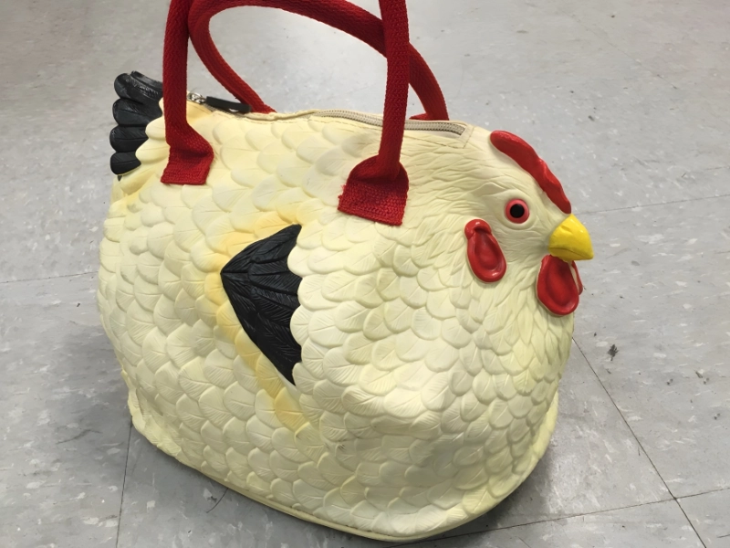 Fundort: Goodwill Wert: 5–10 $* Nach einer gründlichen Reinigung könnte diese Handtasche zu einem stylischen Accessoire werden. Immerhin entwirft Moschino auch Taschen in Form von Eisbechern und Cheeseburgern. Ein Käufer in einem Goodwill-Laden entdeckte diese Tasche in Hühnerform.