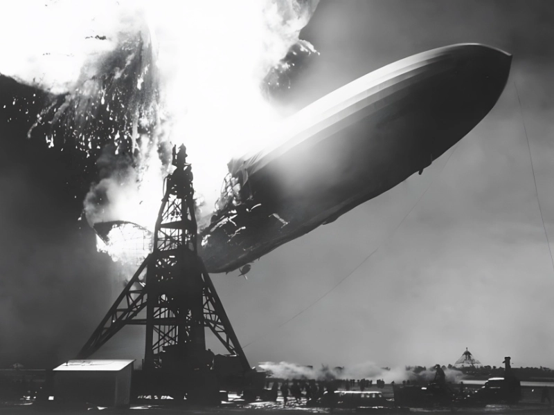 Ort des Geschehens: Manchester Township, New Jersey, USA. Schadenssumme: 3 Millionen US-Dollar (Gesamtschaden) Fotos der Hindenburg-Katastrophe erinnern eindringlich daran, wie schrecklich dieses Ereignis war. Eines der größten Luftschiffe der Welt, ein gigantisches deutsches Passagierluftschiff, fing bei der Landung Feuer, was zur Katastrophe führte.