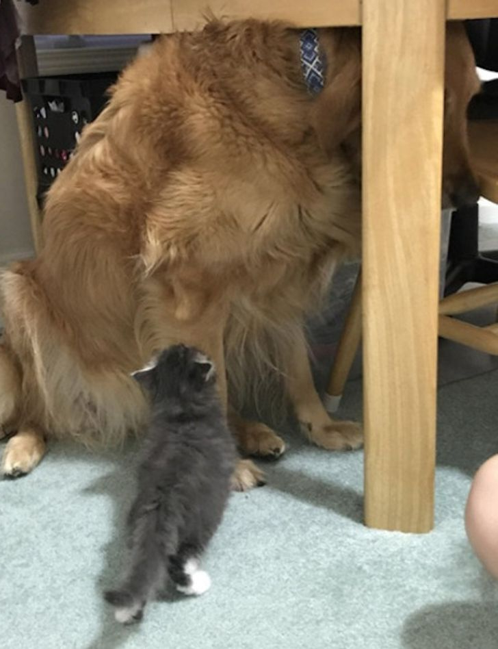 Even with a huge size gap, this little kitten rules the roost—and everyone finds it hilarious. This role reversal shows that courage isn’t about size, and animals always keep us smiling with their big personalities.