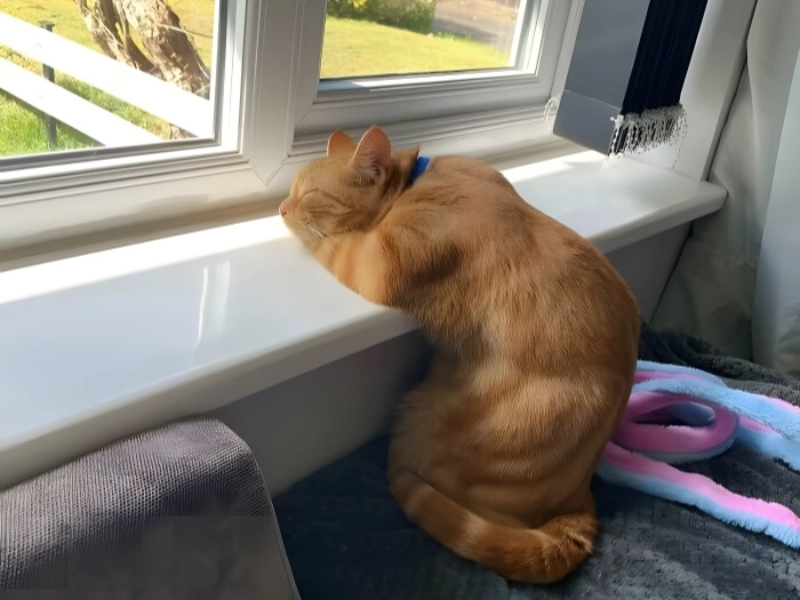 Être un chat est une existence difficile, vraiment. De l'observation des oiseaux à la fenêtre à l'exploration sauvage en plein air, ces petits êtres ont un emploi du temps chargé. Et Eddie le chat en ressent certainement le poids ! Il n'a tout simplement pas pu garder les yeux ouverts après une longue et exigeante journée passée à observer les oiseaux depuis la fenêtre. Et avec ce sourire aux lèvres, nous ne pouvons que supposer qu'il rêve de les attraper ! Ses moustaches qui frémissent légèrement dans son sommeil suggèrent qu'il est peut-être en plein rêve de poursuite. Eddie semble si détendu dans sa position de sieste, surtout lorsqu'un rayon de soleil caresse son visage. Il me fait penser à un gentleman très raffiné, comme cela ! Le rayon de soleil qui réchauffe délibérément son pelage constitue le coussin chauffant naturel idéal, prouvant l'aptitude naturelle des chats à trouver les endroits les plus cosy de toute maison. Son calme et son regard doux capturent vraiment l'esprit de la vie féline ; ainsi, même les activités les plus ordinaires, comme observer les oiseaux, semblent être un travail exigeant méritant un repos bien gagné.