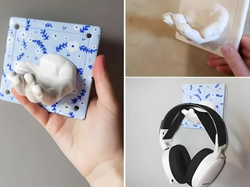 Lieu de trouvaille : Inconnu. Valeur approximative : 3 $. Qui a dit que les objets inquiétants ne pouvaient pas être transformés en accessoires utiles pour la maison ? Lorsque ce chineur a découvert un moulage de main d'un inconnu, il a décidé de l'utiliser pour créer un support pour son casque audio. Cette transformation ingénieuse démontre qu'avec un peu de créativité, tout peut être détourné de manière pratique.