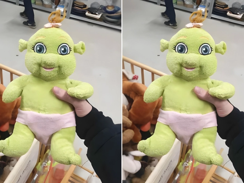 Lieu de trouvaille : Inconnu. Valeur estimée : Inconnue. Cette personne a trouvé la perle rare, mais parfois il faut chercher un peu. En parcourant le rayon des peluches de la friperie de son quartier, elle est tombée sur un petit Shrek en peluche qui ressemblait au premier abord à une grenouille.